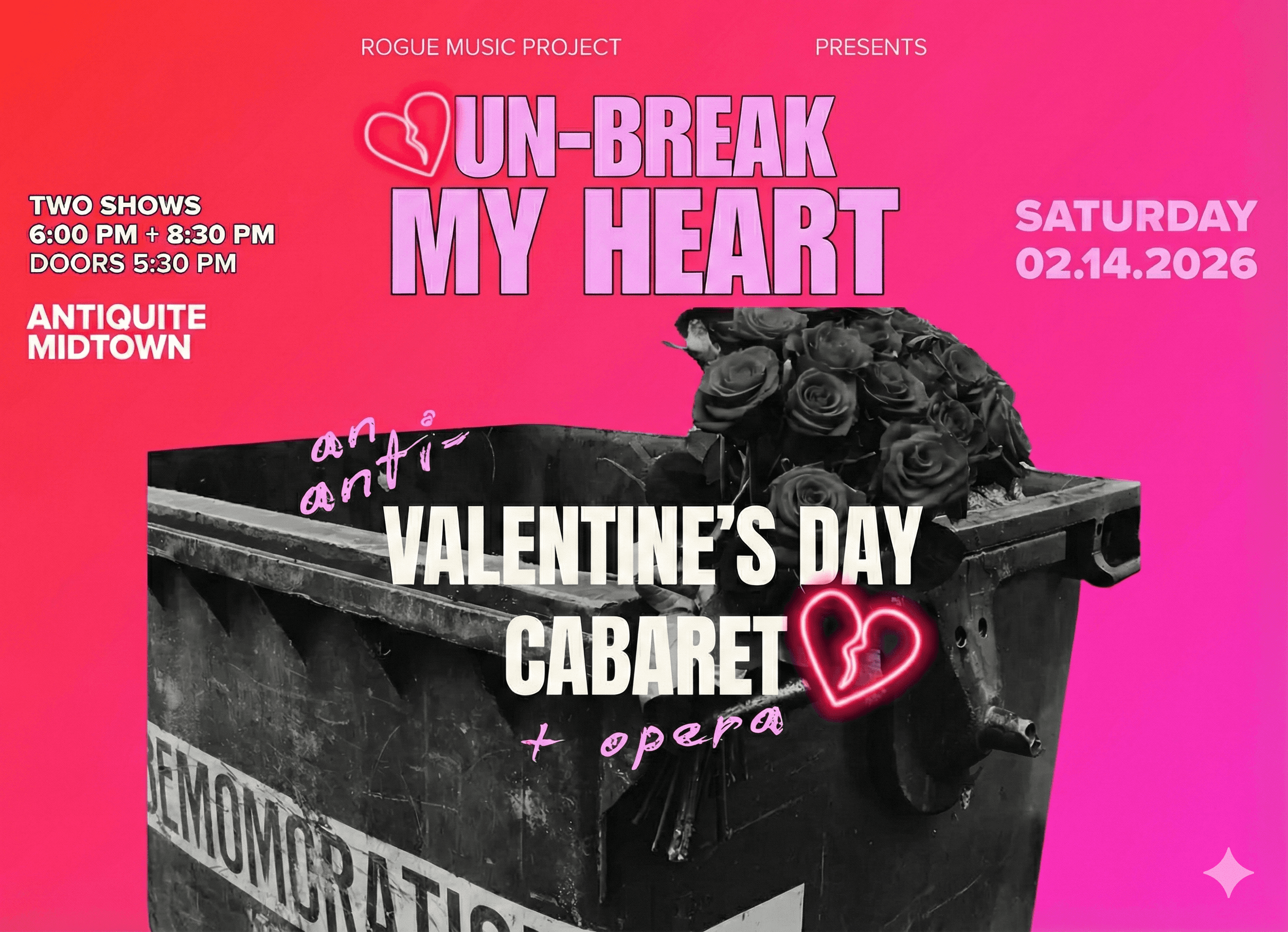 We are a Sacramento-based collective specializing in opera and classical music on the fringe. Rogue Music Project (RMP) creates adventurous productions that push artistic boundaries and break genre rules in order to reinvigorate the opera and concert experience. It’s RMP’s mission to entertain and enlighten audiences — creating an atmosphere of music, art, and fellowship.